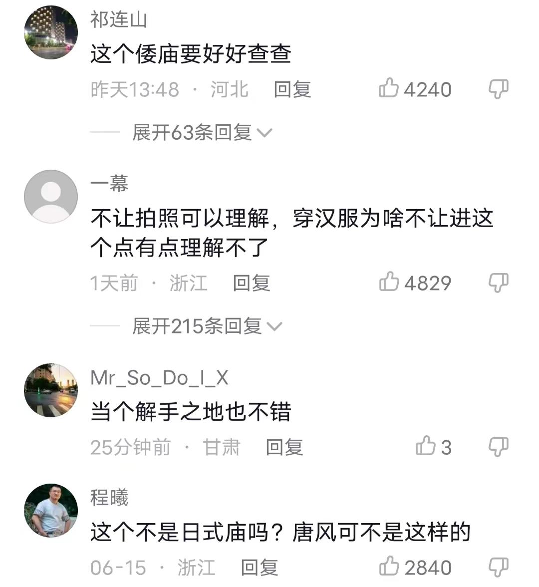 “不愧是以倭代华的寺庙,穿汉服不让进,穿和服是不是就可以了。”