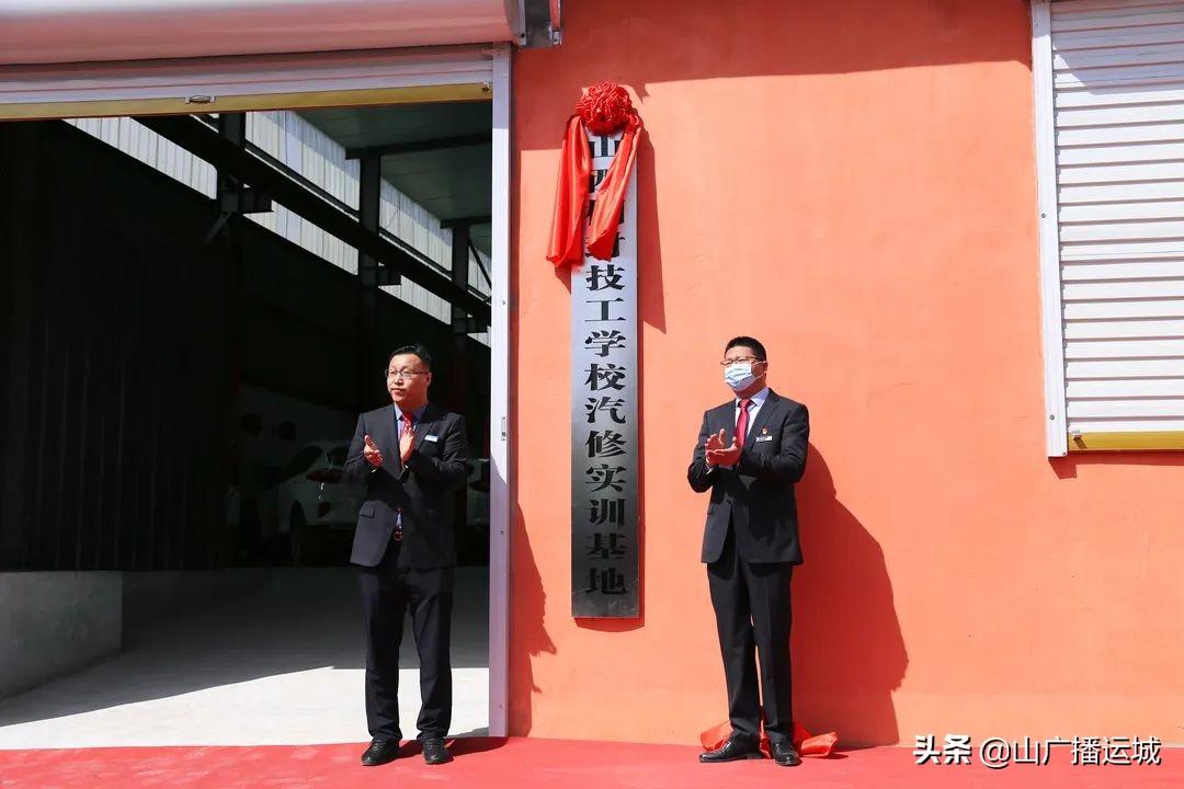 轮值董事长杨旭枝、山西桐封技工学校就业部校长李宗洋共同为汽修实训基地揭牌。
