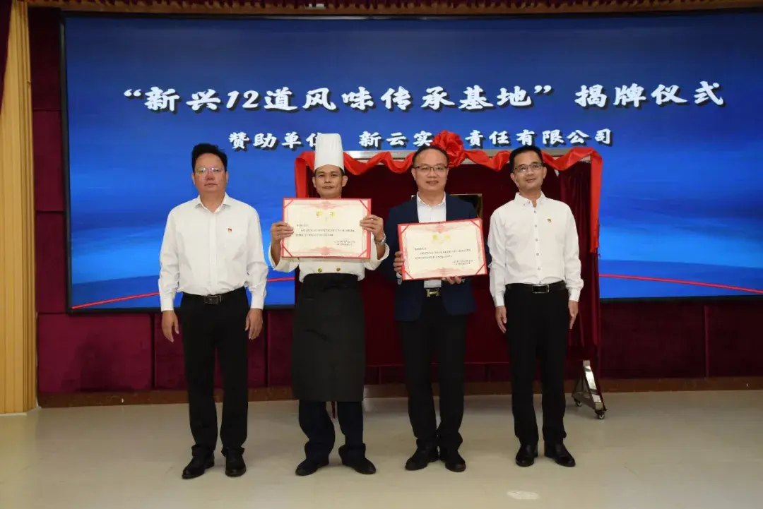 ▲新兴12道风味传承基地揭牌仪式