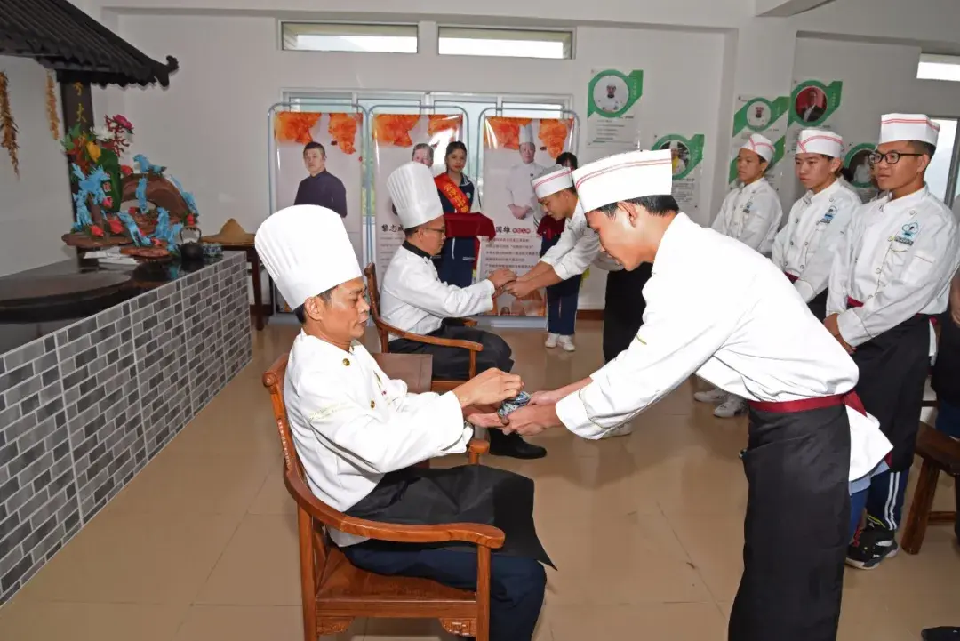 在拜师仪式上,徒弟向师傅奉上了香茗,道一声:师傅,请喝茶。师傅品尝了徒弟的香茗,在一次次躬身行礼中感受传统的厚重。随着徒弟为师傅敬茶等一系列仪式的完成,师徒之间的情谊就此凝结,匠心传承、薪火相传由此展开。有着多年粤菜师傅经验的谭伟坤大师表示自己将倾真情,传真经,毫无保留得将新兴十二道风味的技术和要领传授给我们的学生,做好“传、帮、带”的工作,让新兴十二道风味家喻户晓。