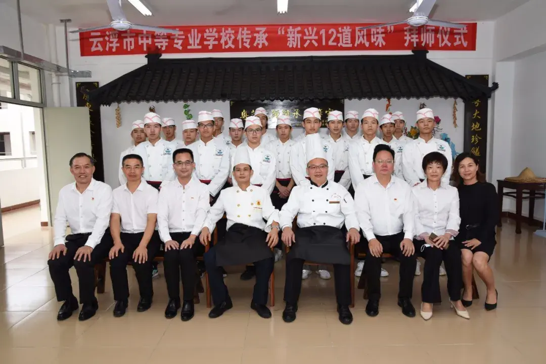 为进一步深化校企合作,传承本土饮食文化,推进烹饪专业“师徒带教、传艺修业”校企合作模式,云浮市中等专业学校(以下简称“云浮中专”)于10月20日举办新兴12道风味传承基地揭牌暨拜师仪式。本次揭牌仪式是云浮中专与新云实业校企合作大背景下落实的一项重要合作项目,也是该校在创建高水平中职学校中深化产教融合工作的重要举措。该校领导班子、新兴餐饮协会副会长黎伟成、粤菜大师谭伟坤、校企合作企业代表、烹饪专业部师生代表参加了本次活动。仪式由该校副校长唐锋主持。