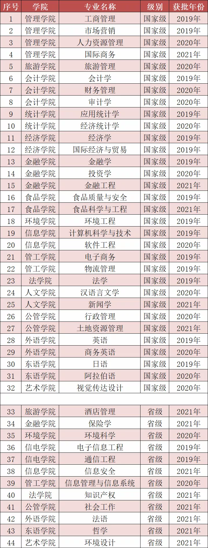 上面这个介绍挺好,只不过最大的问题就是更新不够及时。根据最新的消息,浙江工商大学目前一共拥有“双万计划”一流本科专业建设点44个,其中国家级一流本科专业32个,省级一流本科专业12个。