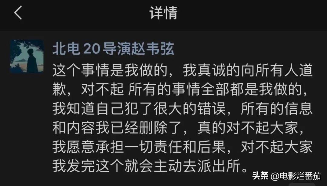 这位“电影界的教父”之所以会被扒,和他的好徒弟北京电影学院02届导演系的赵韦弦有关。