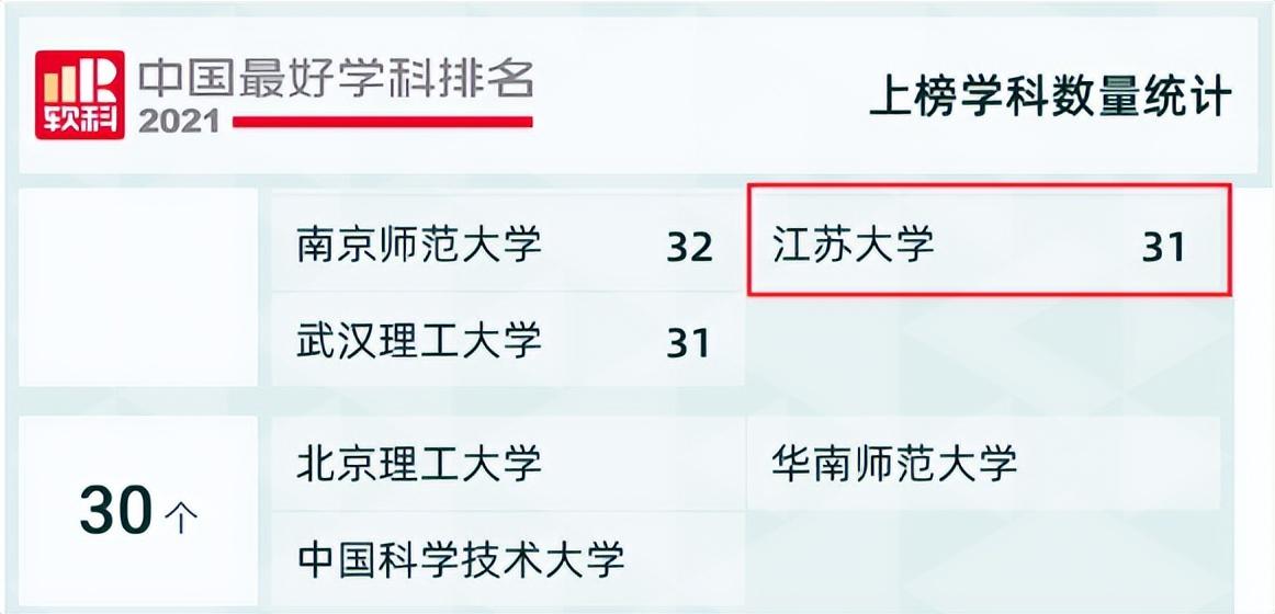 2021年8月,在软科世界大学学术排名中,江苏大学位列世界排名301-400位,中国内地排名36-57位,在上榜的21所江苏高校中,学校位居第4;