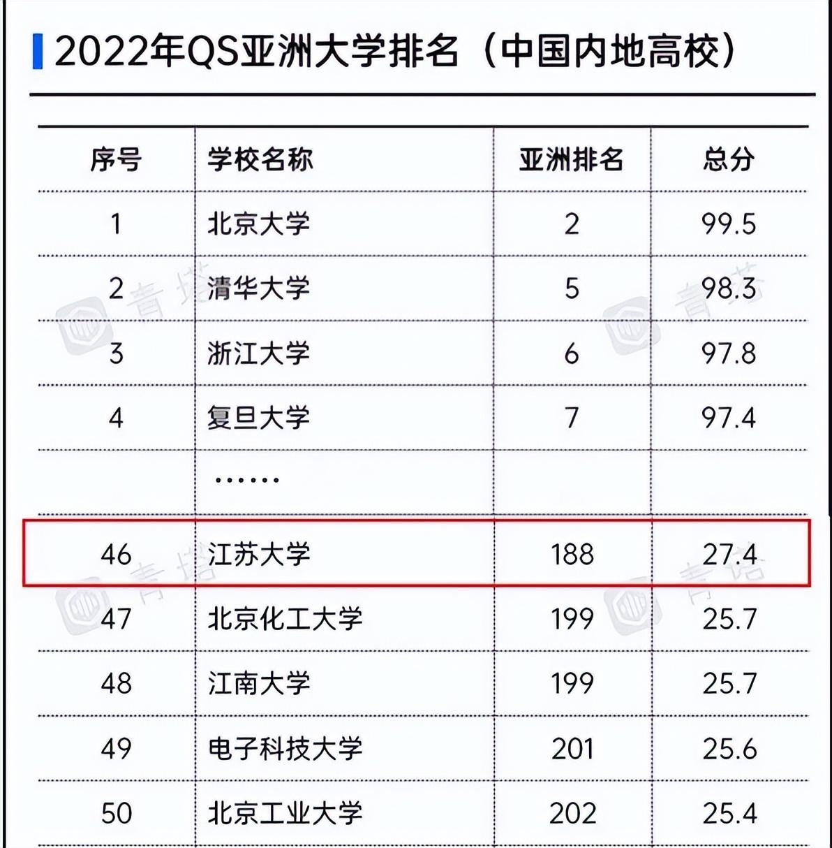 11月,在2022QS亚洲大学排名中,学校位列内地高校46位,亚洲高校188位;