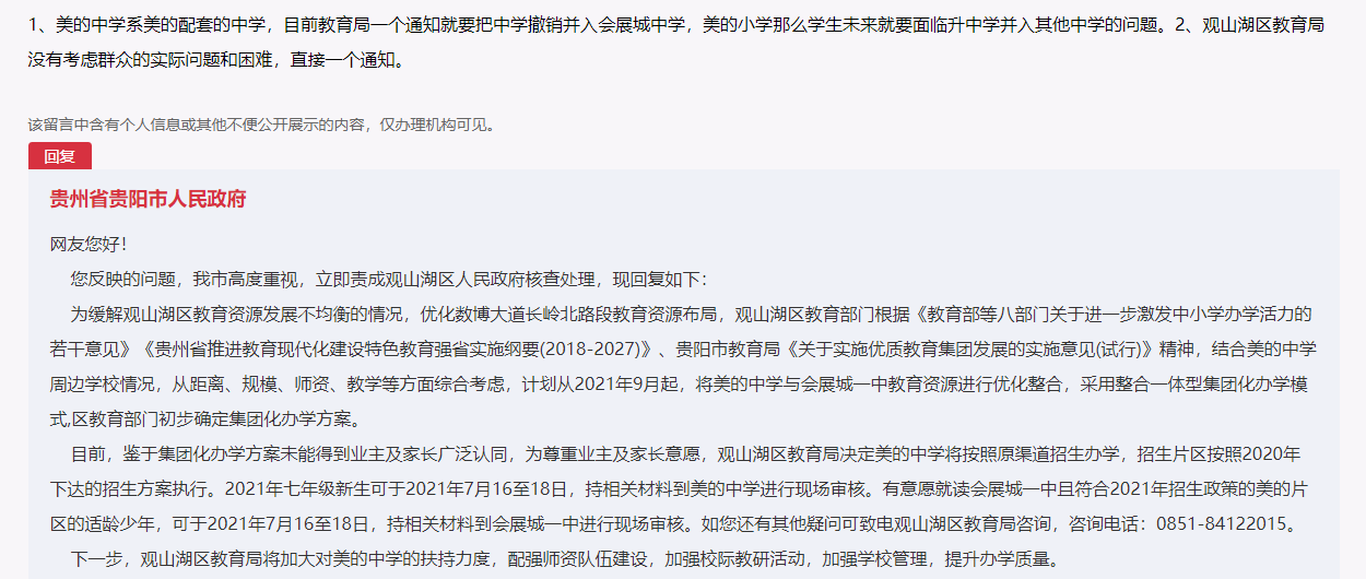 在政府的公开留言渠道上,我看到不少关于教育方面的问题。小至幼儿园,大到高中,贵阳各区的家长们,都有各种各样不同的问题,常年无休。