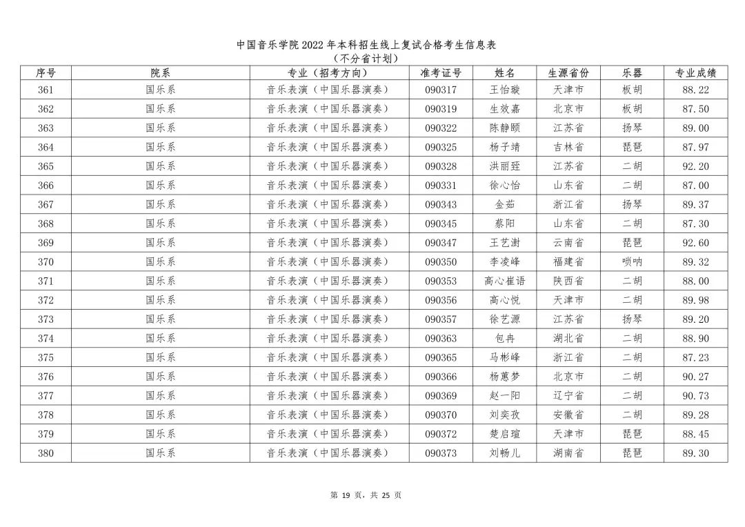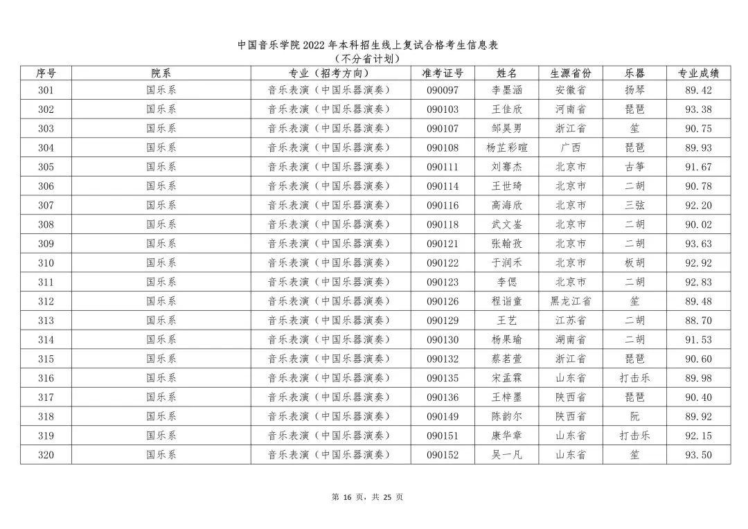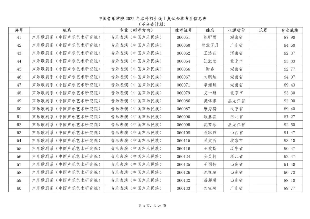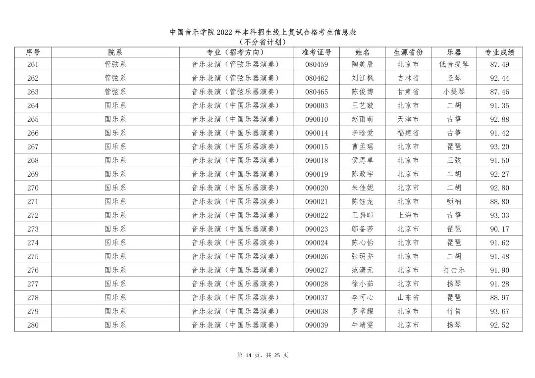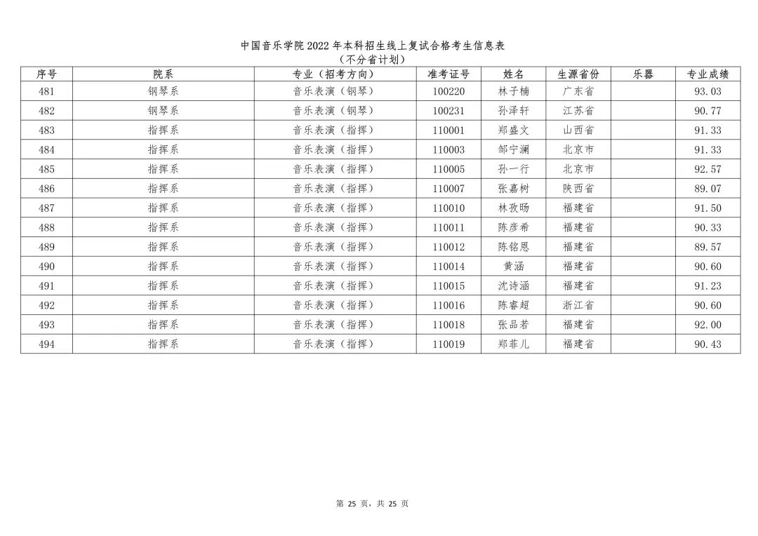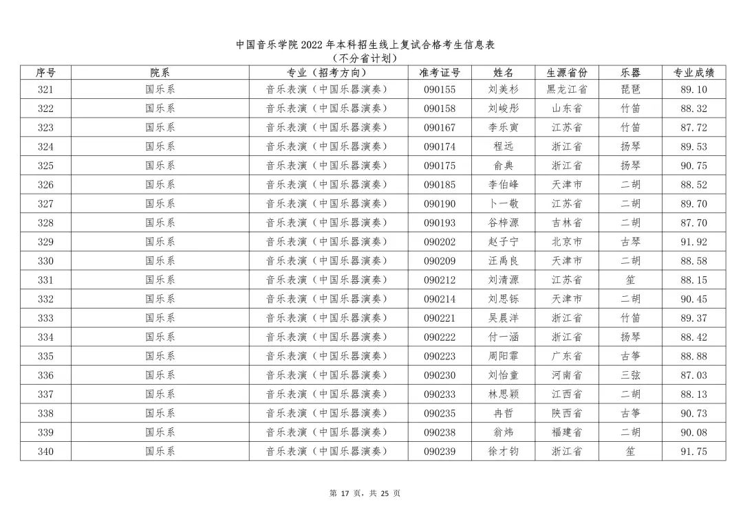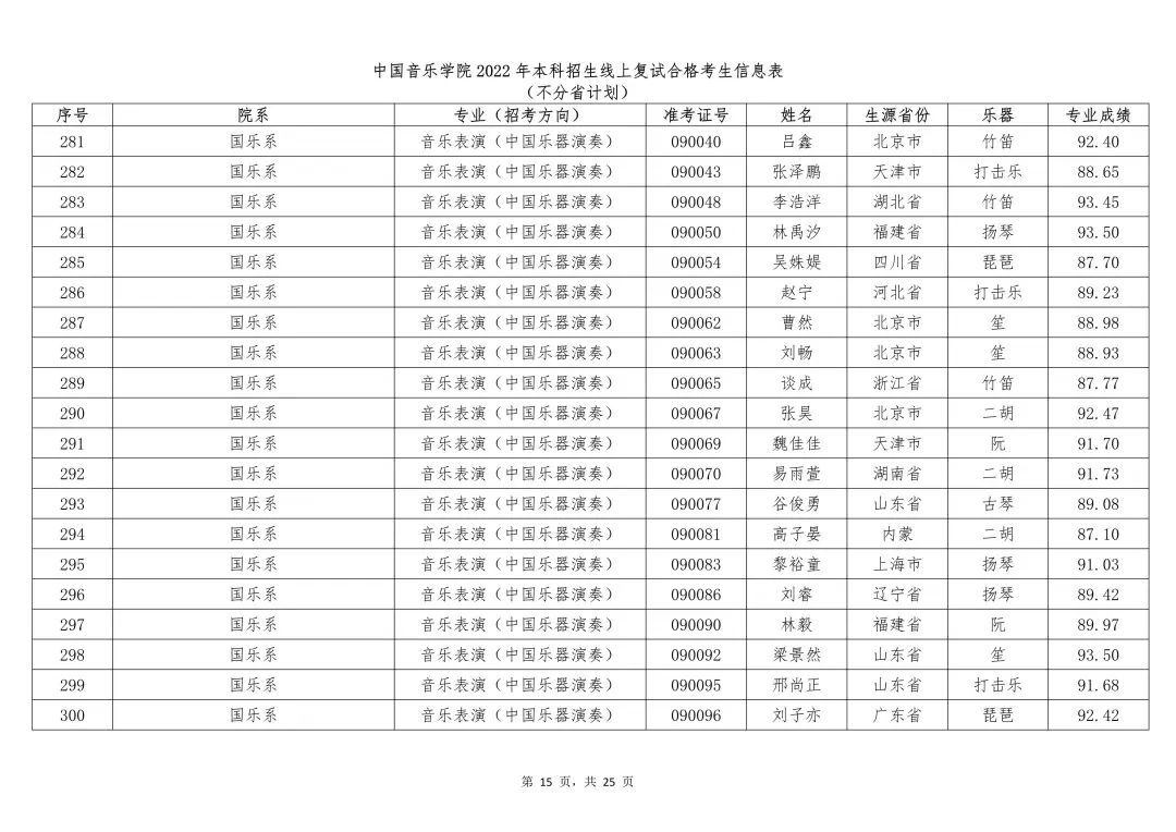 附件:1.中国音乐学院2022年本科招生线上复试合格考生信息表 (不分省计划)
