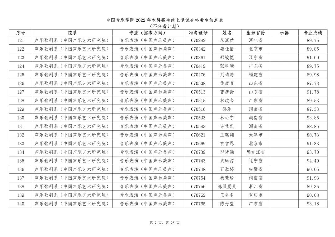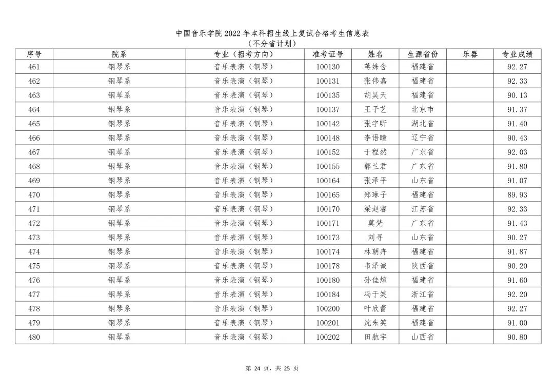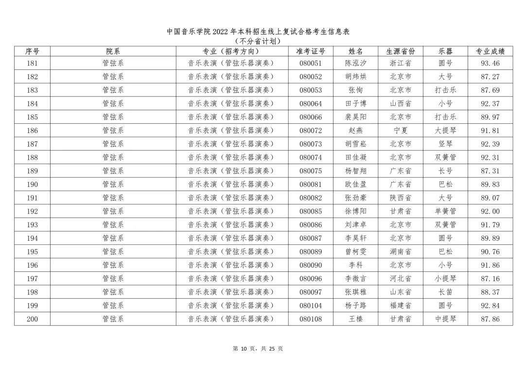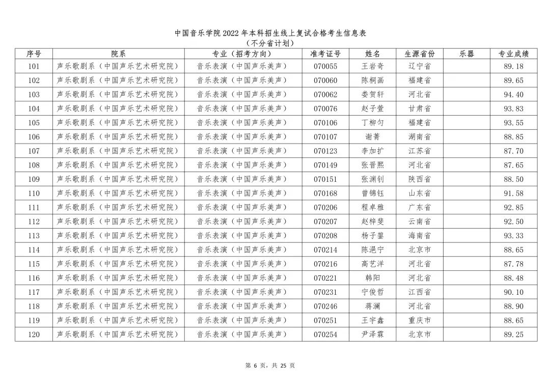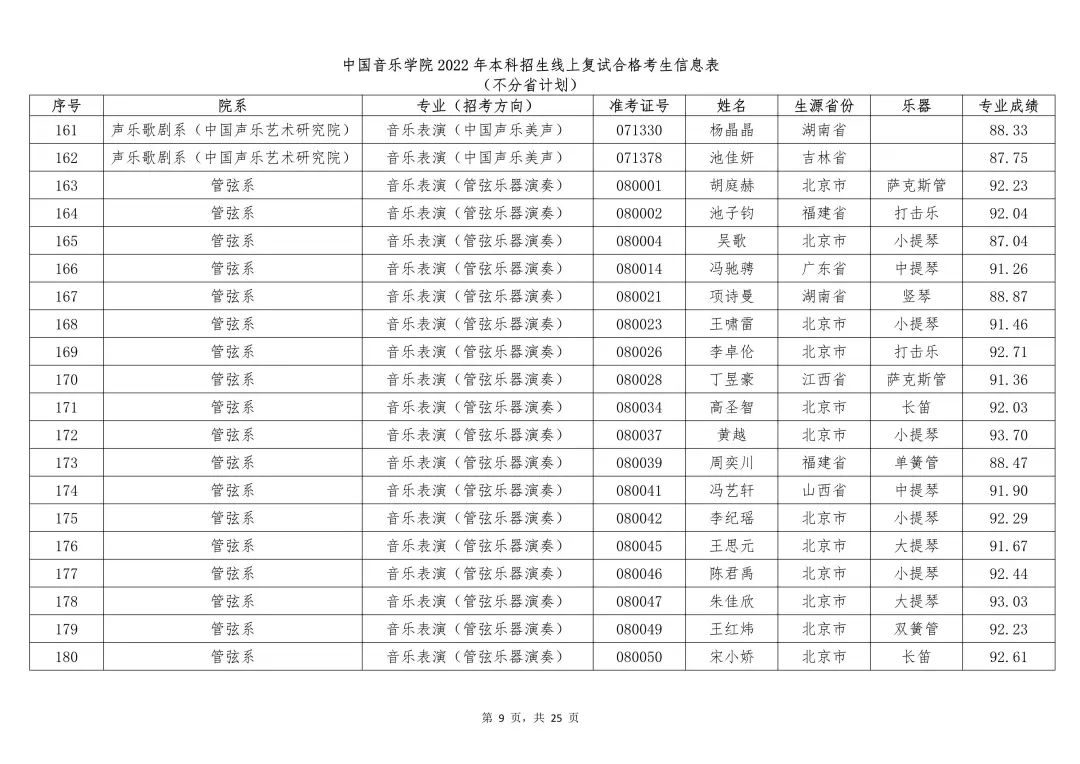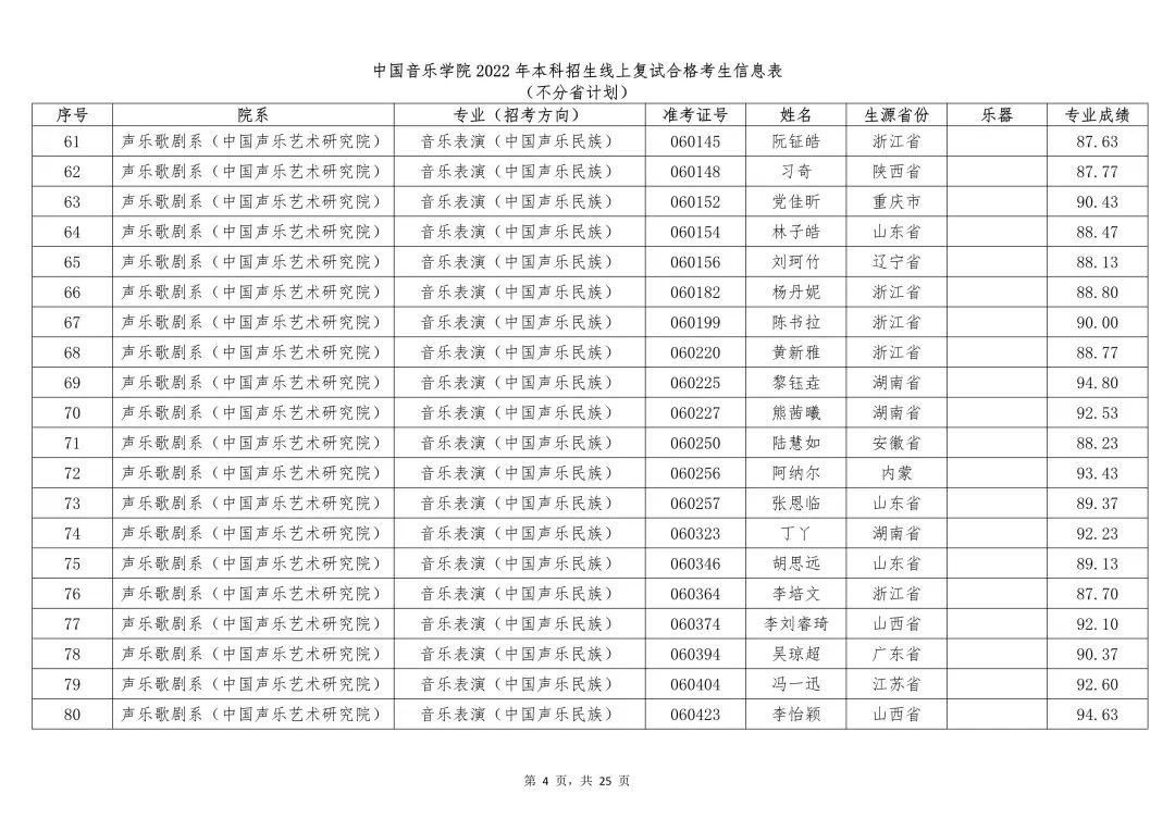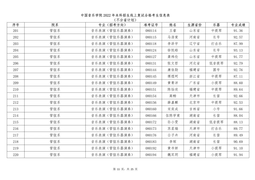 附件:1.中国音乐学院2022年本科招生线上复试合格考生信息表 (不分省计划)