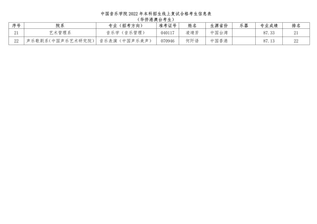 2.中国音乐学院2022年本科招生线上复试合格考生信息表 (华侨港澳台考生)