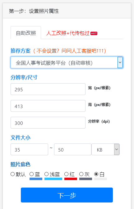 照片尺寸:300dpi分辨率,295像素宽,413像素高