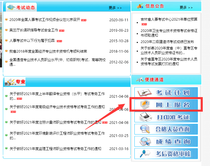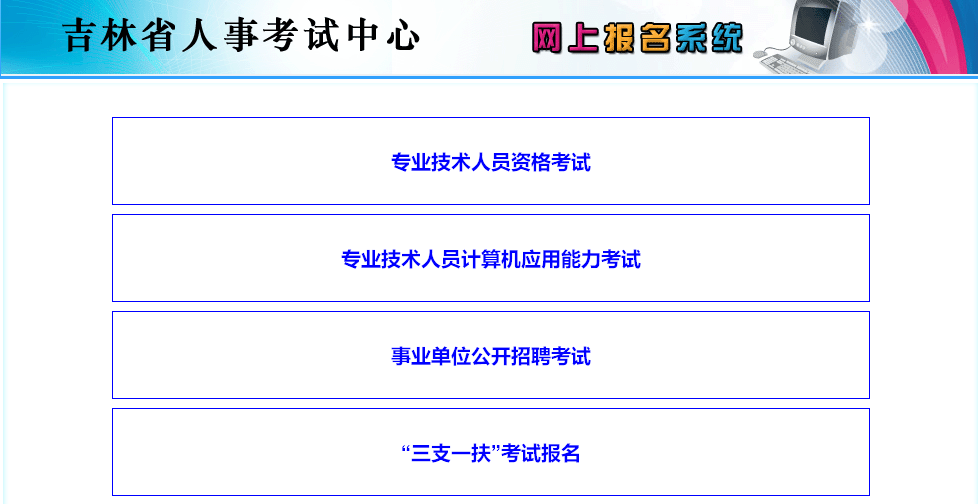 网上报名方式:考生(务必使用标准的IE9或以上浏览器)登录吉林省人事考试中心网站,在“便捷通道”区域点击“网上报名”→“事业单位公开招聘考试”,详细阅读《吉林省省直事业单位公开招聘工作人员网上报名诚信协议》后点击“同意”进行网上报名,自愿严格遵守各项承诺和要求。