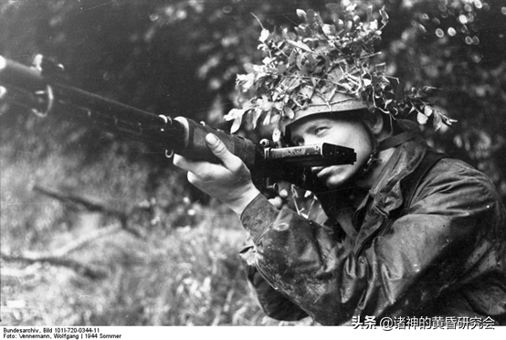 1944年夏在诺曼底地区作战的德军伞兵,正使用FG42伞兵步枪进行精准射击