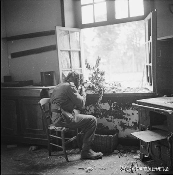 1945年4月16日德国于尔岑(Uelzen),一名英军第15(苏格兰)师的狙击手正在清扫德军抵抗。