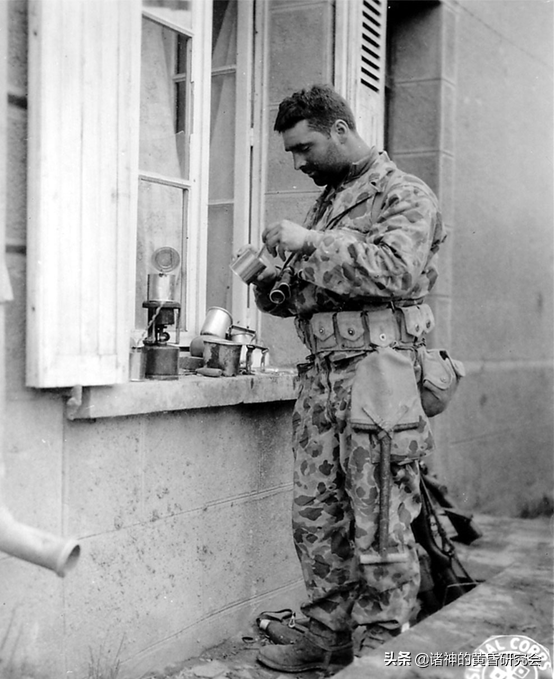 美军在诺曼底登陆后不久就发现自己装备的M42式迷彩服(绰号“青蛙皮” /Frogskin)由于和党卫军的44式迷彩罩服极为相似,所以导致多起误伤事件,尽管进行了一些改进,但误伤仍有发生,最终美军在欧洲战场停止使用该服装。图为在诺曼底区域的一名穿着“青蛙皮”的海军陆战队士兵