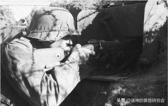 德军空军野战师(Luft-Feld Division)的狙击手,手持的是Zf41瞄准镜的K98k狙击步枪