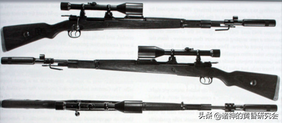 德军在第二次世界大战中的最后一款狙击步枪:带Zf4瞄准镜和消音器的K43狙击步枪(K43 mit Zf4 und Auspufftopf),这是希特勒在1943年6月亲自下令研发的,元首希望G43半自动步枪也能安装新型瞄准镜和消音器,德国人花了4周时间研制并制定了生产计划,但实际上只有极少量的消声器投产。