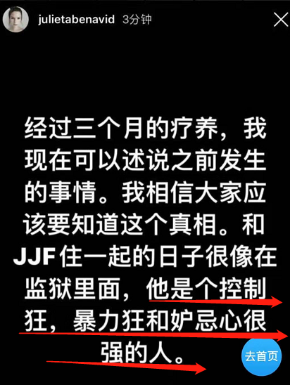 11月26号晚,蒋劲夫外籍女友Julieta,在个人社交平台上曝出蒋劲夫对她的恶行称“和他在一起的日子像是生活在监狱里,蒋劲夫是个控制狂、暴力狂和妒忌心理很强的人”。