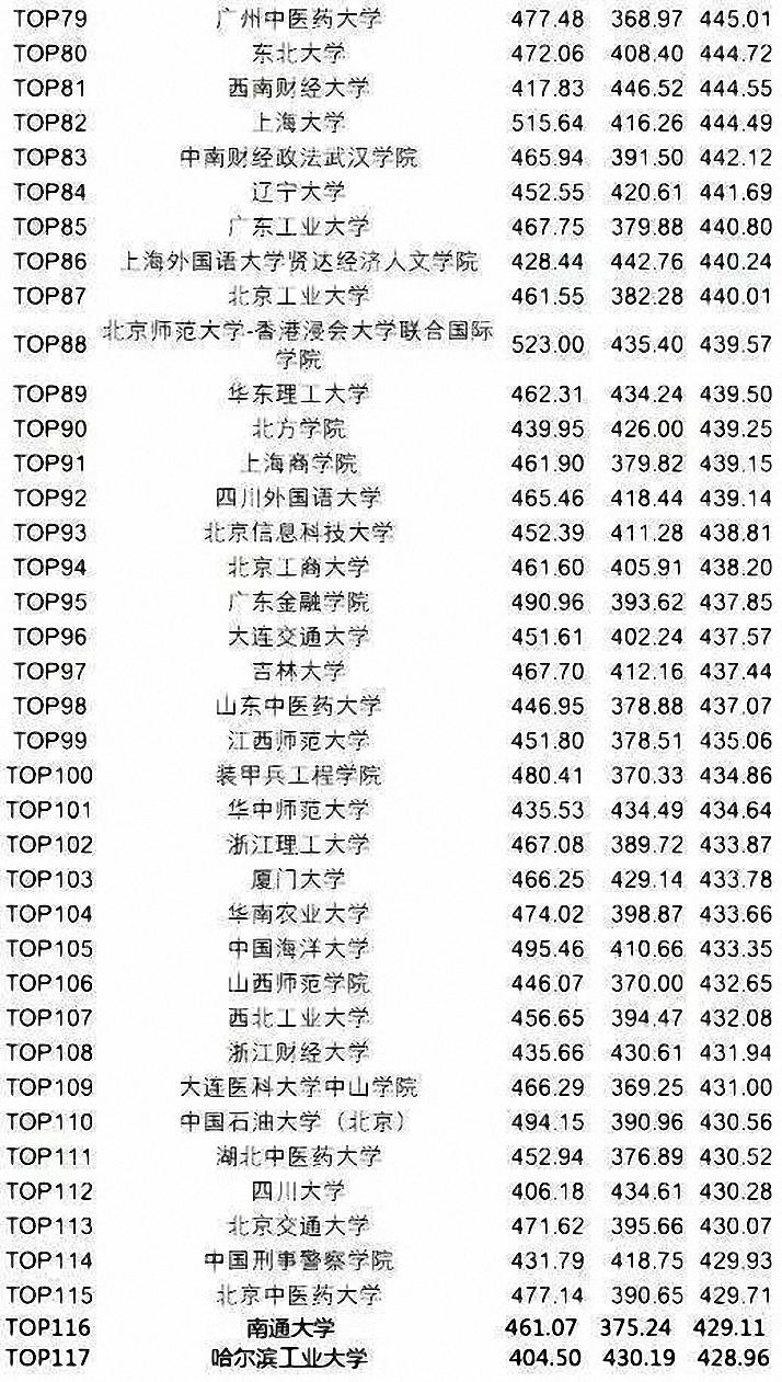 多数大学都以四级考试通过作为毕业的标准之一,所以四级考试参加的人数较多。在四级均分的数据中,北京大学的分数最高,为587.23分。外交学院排名依然靠前,仅落后北大1.33分。