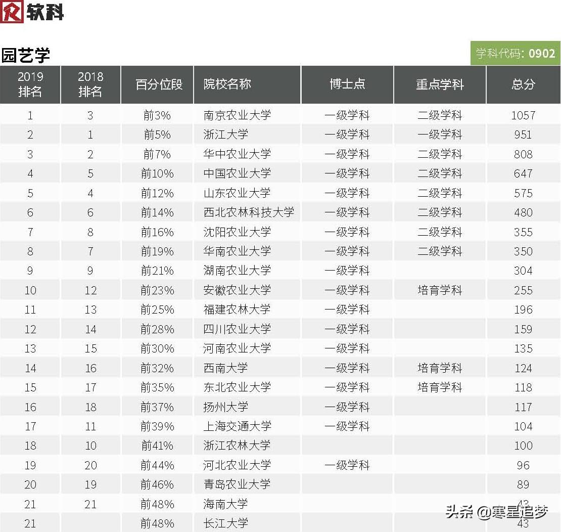 全国开设园艺学学科专业本科以上高校44所,以下是排名前50%的高校。