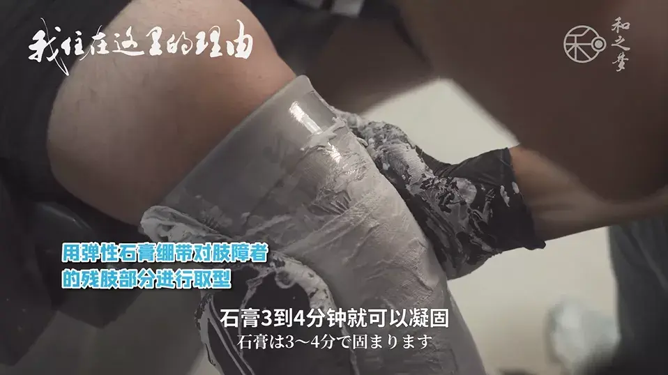 先用弹性石膏绷,带对肢障者的残肢部分进行取型。