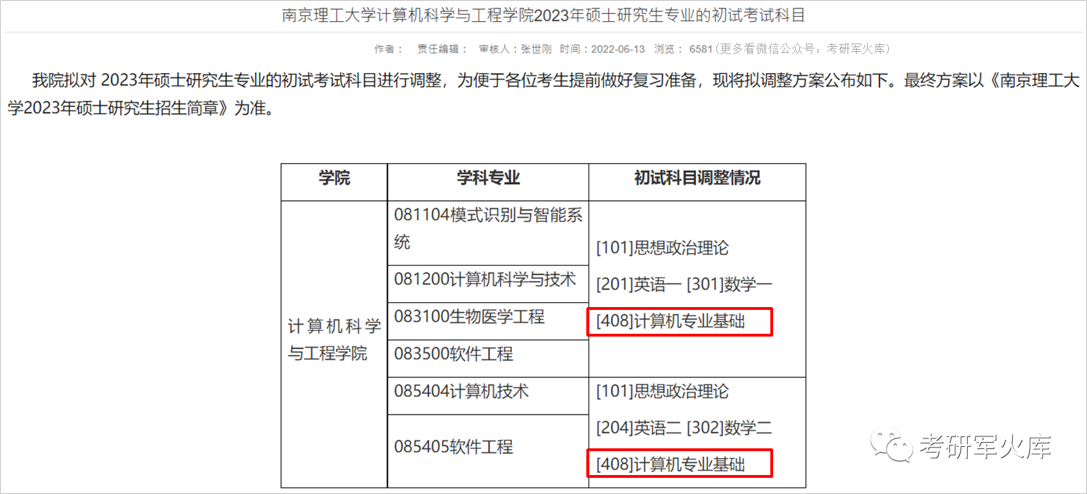 计算机科学与技术、软件工程的初试业务课二由“859数据结构”拟调整为 “408计算机学科专业基础”。