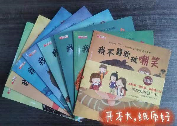 这套绘本共有8册,包括了《我不喜欢被造谣》、《我不喜欢被排挤》、《我不喜欢被使唤》等等。