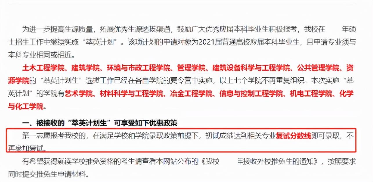 这些学校不是普通学生的初试成绩过线就可以免复试,而是针对参加学校的夏令营、萃英计划以及优研计划的学生才有资格,也就意味着“捡漏”也是给有准备的人准备的。