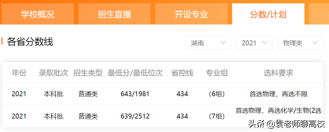 以湖南省2021年高考录取为例,北京航空航天大学本科批普通物理类最低分为654分,南开大学本科批普通物理类最低分为639分,同济大学本科批普通物理类最低分为647分,从录取分数线来看,南开大学略低于另外两校!