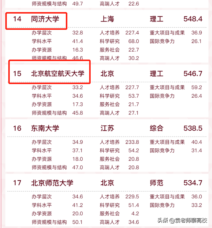 以2022年软科高校排名来看,同济大学位居全国第14位,北京航空航天大学位居全国第15位,南开大学位居全国第20位!