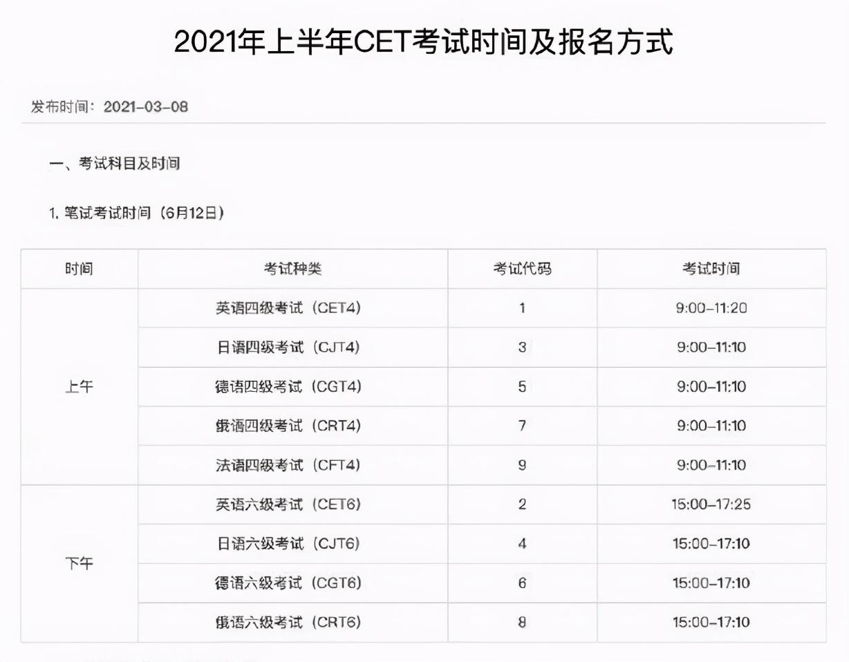 这不,近日,官方就公布了2021年上半年年的英语四六级考试时间,引起了不少网友的关注。
