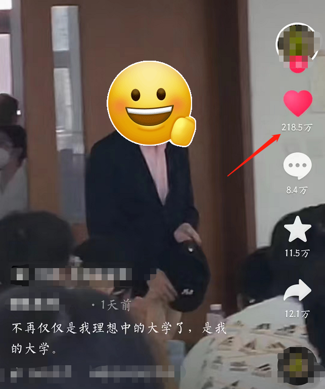 其中有一条视频,就是很简单的阶梯教室。但视频的点赞量高达200万+,连学生自己都没有想到能这么多流量。
