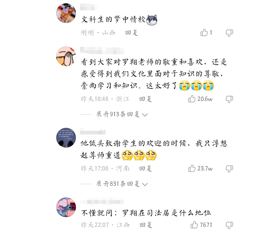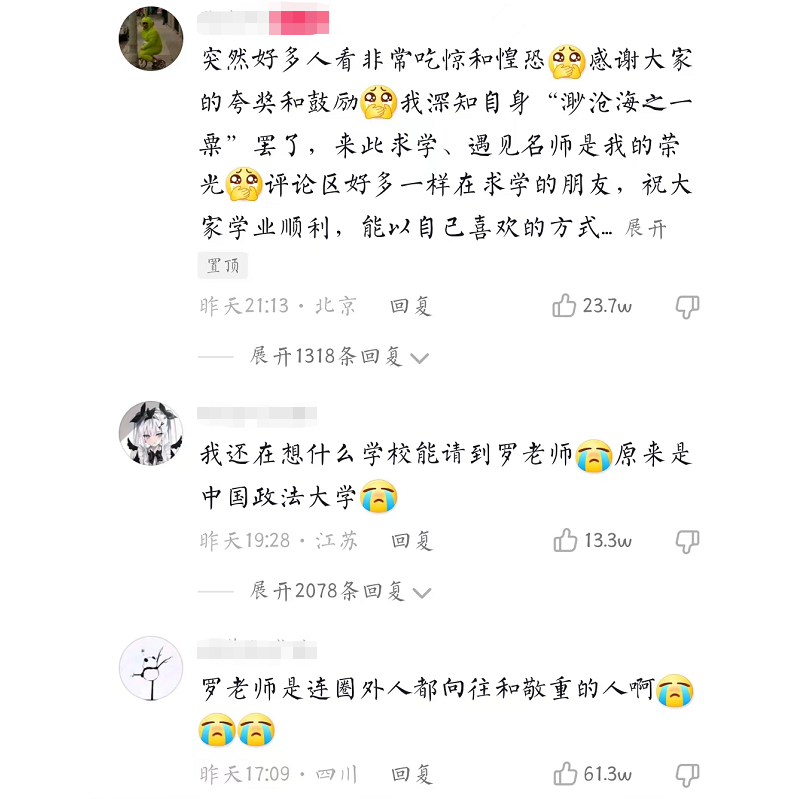 看到同学们对罗老师的这种喜欢,也感到很欣慰。有榜样的力量在前,希望未来的同学们,都能有这样的思想境界。