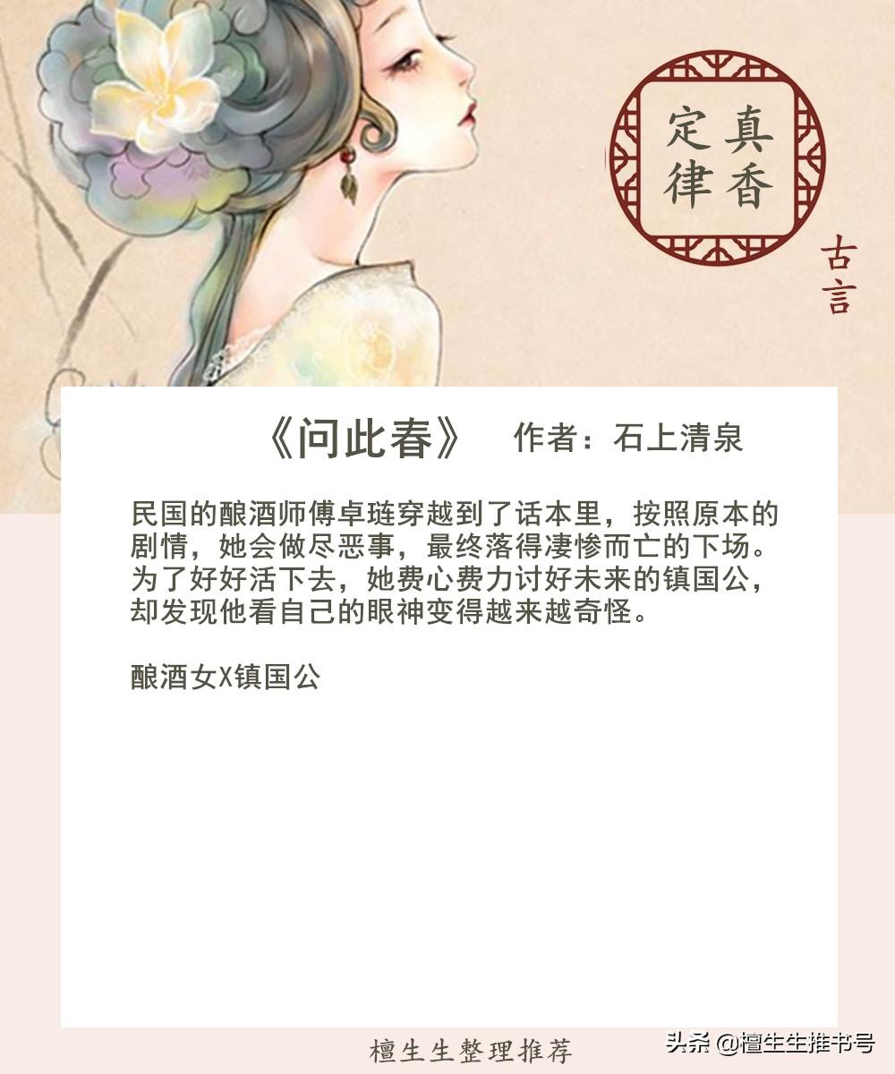 短评:民国酿酒师穿越进话本中,成为书中丧尽天良的恶毒女人,凭着炉火纯青的酿洒技艺在酿酒业混得风生水起,也凭着温暖的性格和赤诚之心,一步步瓦解男主冷酷多疑的心理防线,使男主在矛盾纠结的心态下不知不觉爱上她的故事。女主长相妩媚艳丽却心智坚定为人果敢,男主过着刀口舔血的武官生涯,从名不见经传的卫士到超一品镇国公,靠的是智勇双全、步步为营的血性和耐力~