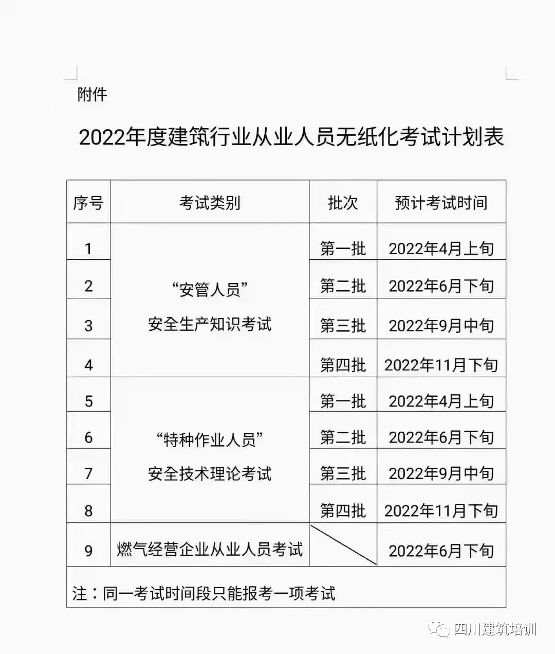 2022年安管三类人员ABC证与住建厅“特种作业人员”考试时间已出共分4批,分别为4、6、9、11月