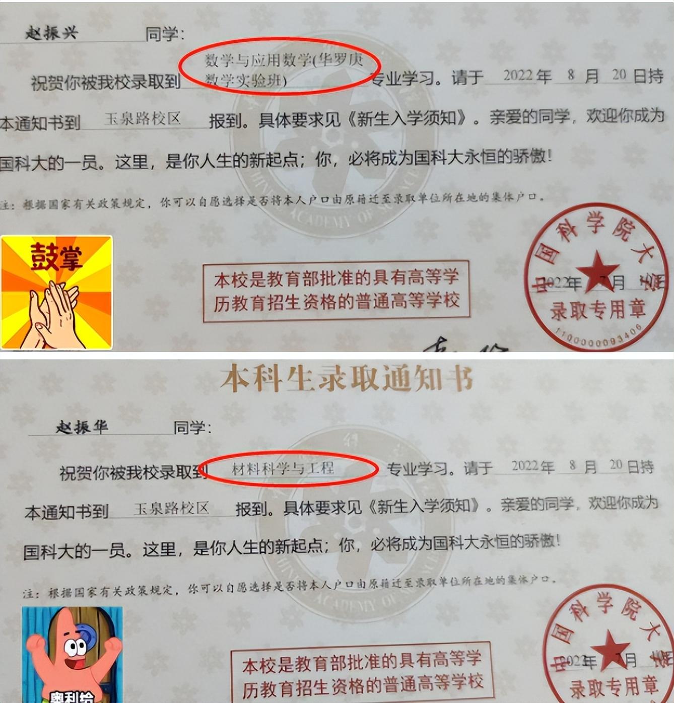 据悉二弟已经被北京大学预录取,只等过段时间收到录取通知书了,而大哥和三弟则收到了中国科学院大学的录取通知书,可谓是“三喜临门”啊!