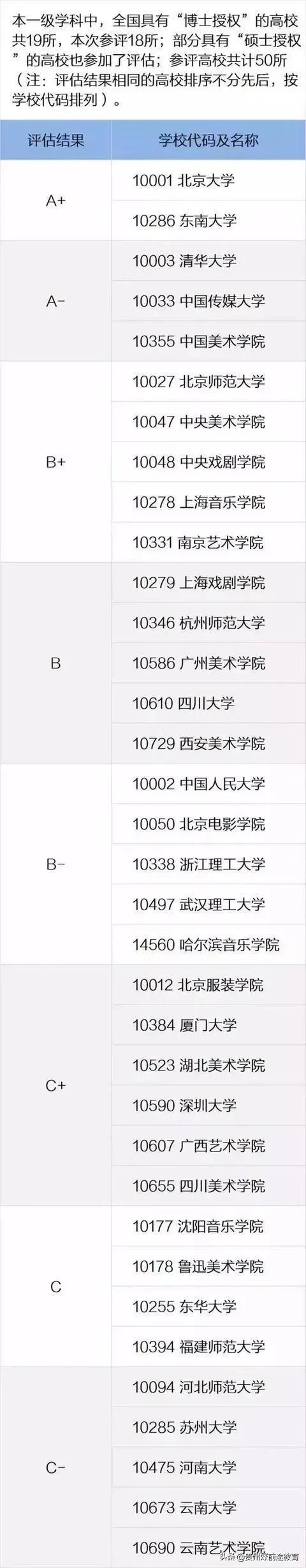 艺术学门类的截至当前,国内并没有官方机构对全国艺术类院校进行排名。在此,我们以全国第四轮学科评估结果作为参考,详情如下: