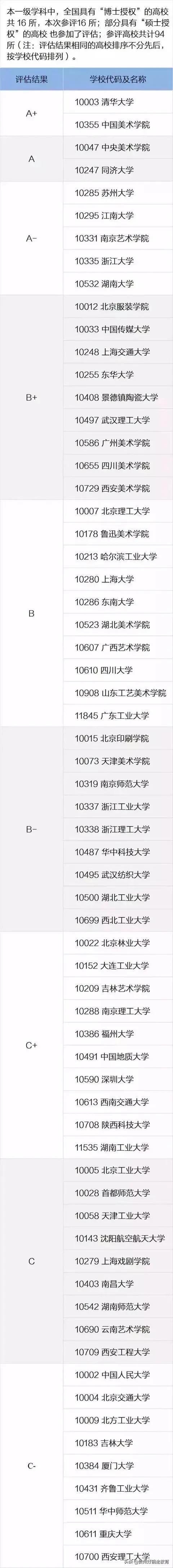 全国设计学学科第四轮评估结果如下: