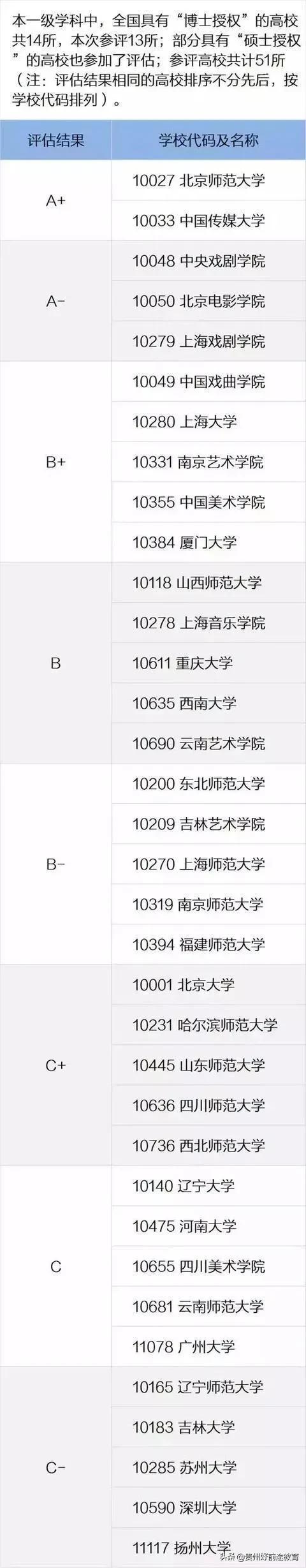 全国艺术理论学学科第四轮评估结果如下: