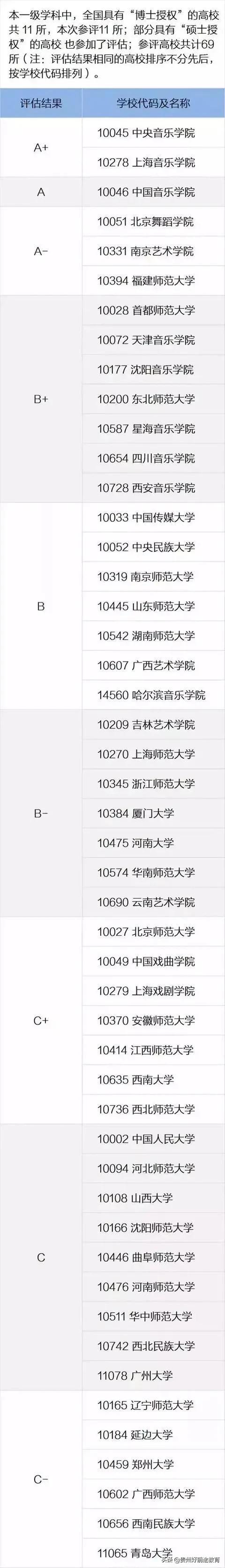 全国音乐舞蹈学学科第四轮评估结果如下: