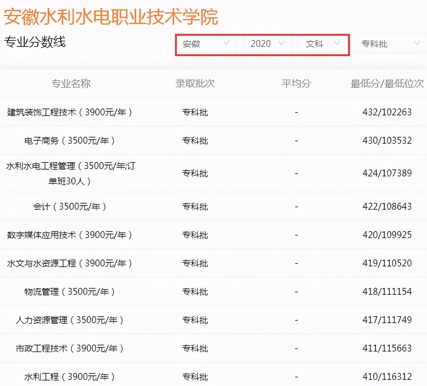 而且安徽水利水电职业技术学院的专业种类很多,毕业后就业率很高,有的专业毕业后比本科生还吃香,2020年安徽省理科考生,最低录取分数线仅270分。