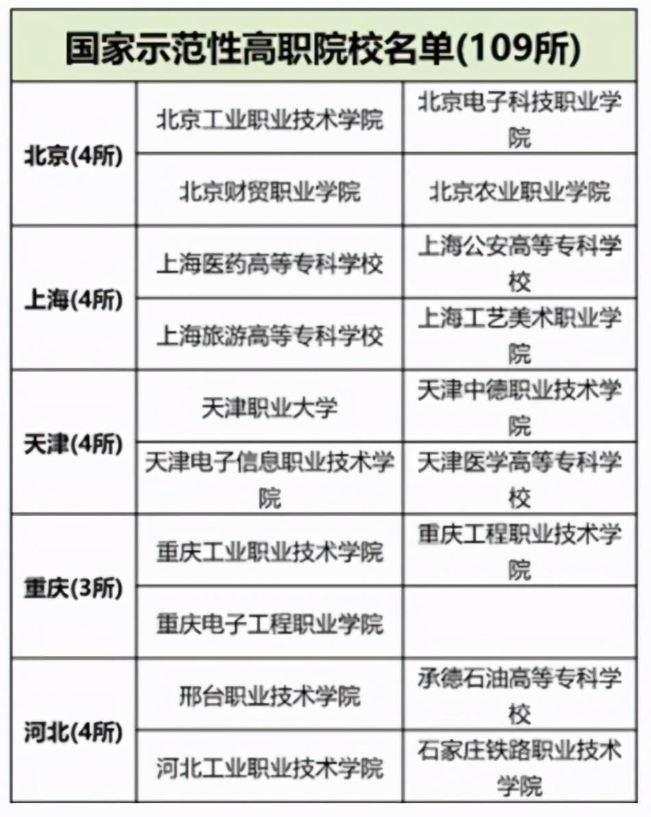 国家示范性高职院校有109所。