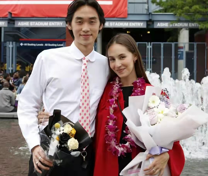不光如此,妈妈西华还在图片旁边配文“这四年里收获了学业和爱情,恭喜两个宝贝儿!”