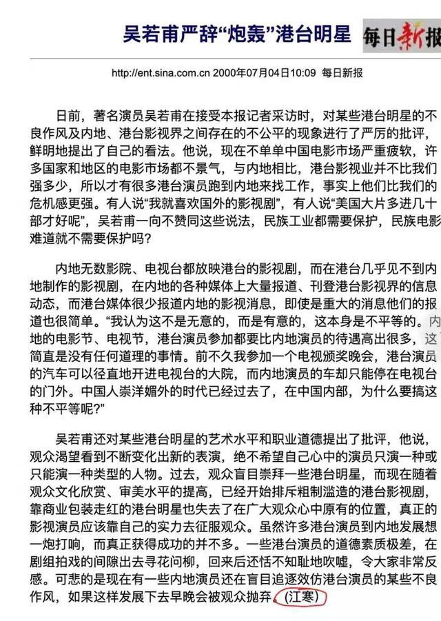用江寒为笔名,写出了一篇《某影厂偷卖土地私建风景区》的新闻报道。