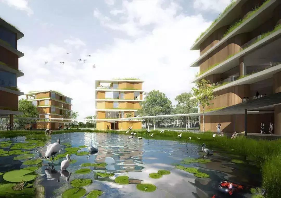 校园与自然界一样是充满生命力的有机体。学校的建筑之间穿插了花园、动物园、假山、农场等绿色生态。让学生在学习之余还能享受大自然。建筑群错落有致,囊括了生活体验中心、剧场等等。