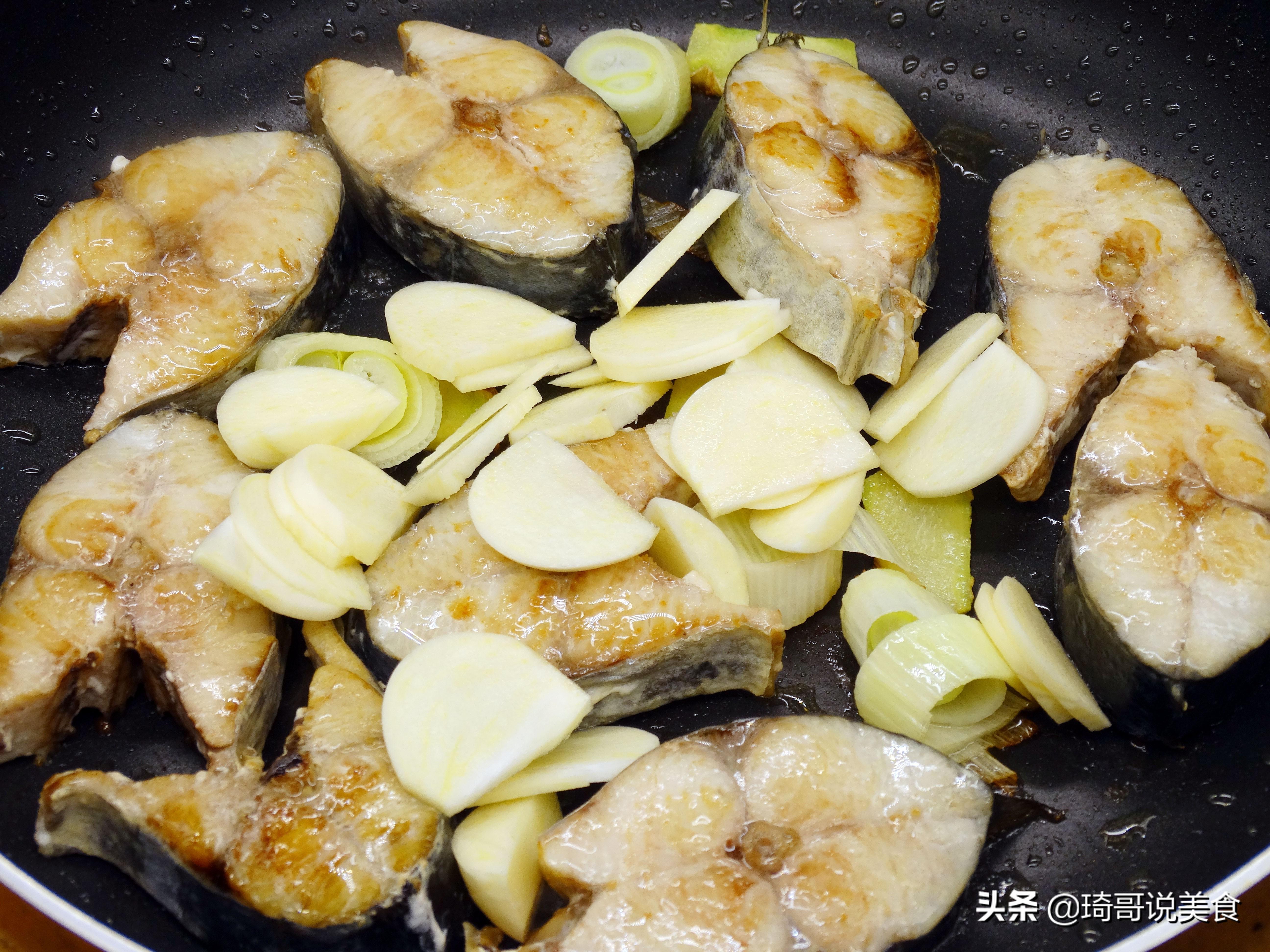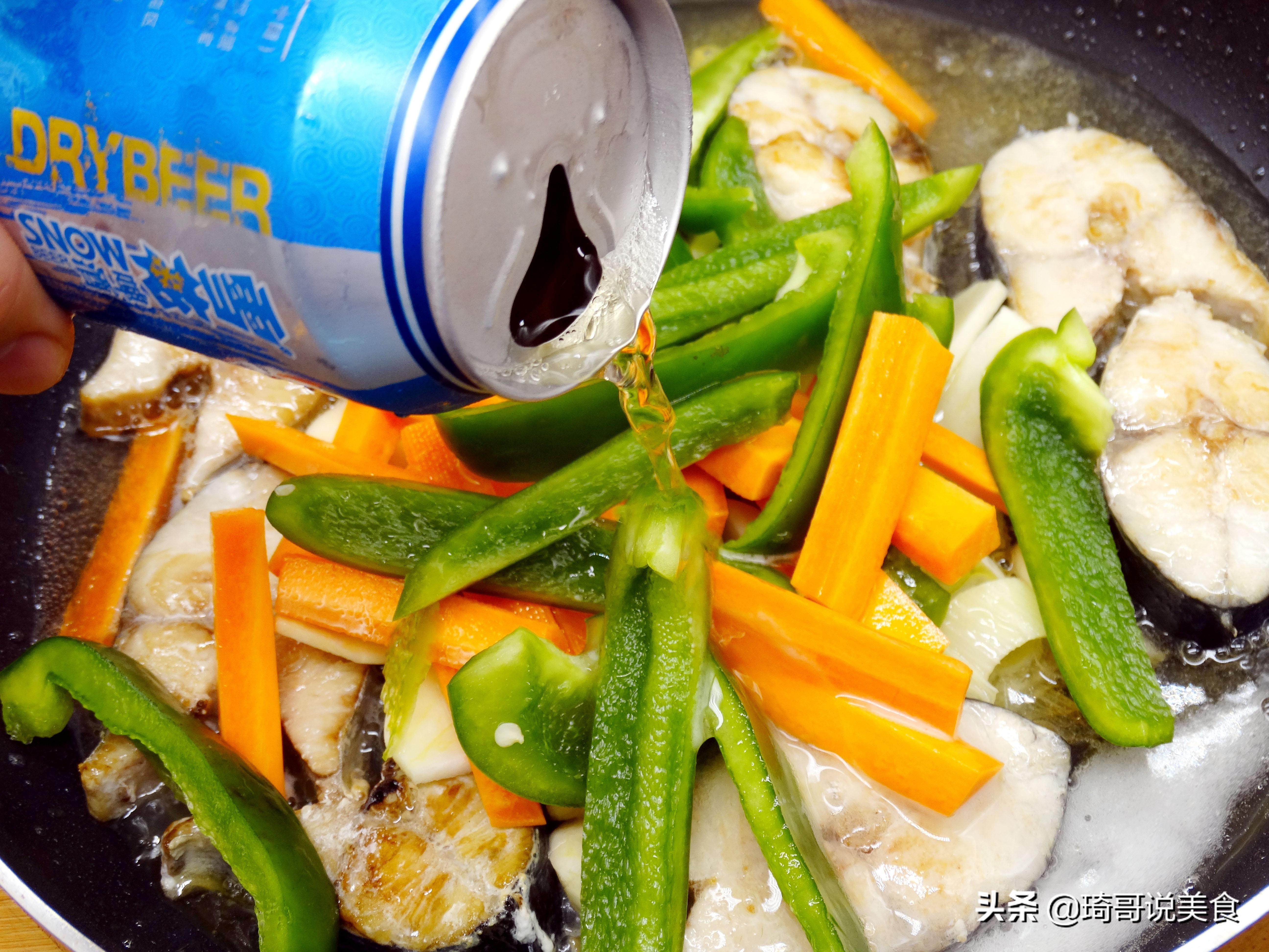 煎鱼要油温稍微热一点,使鱼迅速定型,锁住鱼肉中的蛋白。加一罐啤酒可以去腥增香,啤酒在烹调中是经常用的。鱼肉小火慢炖15分钟,为了吃起来味道更好,可以保留少许汤汁,鲅鱼肉厚的地方可以蘸汤汁吃。鲅鱼肉多刺少,适合孩子与老年人食用。本文由琦哥说美食原创,欢迎关注,如果你想吃什么,告诉我,我给你做。我是一个热爱美食、健身和摄影的新闻工作者。如果您看完本文之后对您有帮助或者喜欢,可以点击红色+号关注“琦哥说美食”,我会每天为您更新更多美食,如您有不同的意见和好的建议给我,欢迎下方留言、评论和我互动,琦哥感谢大家的阅读,我们明天见!