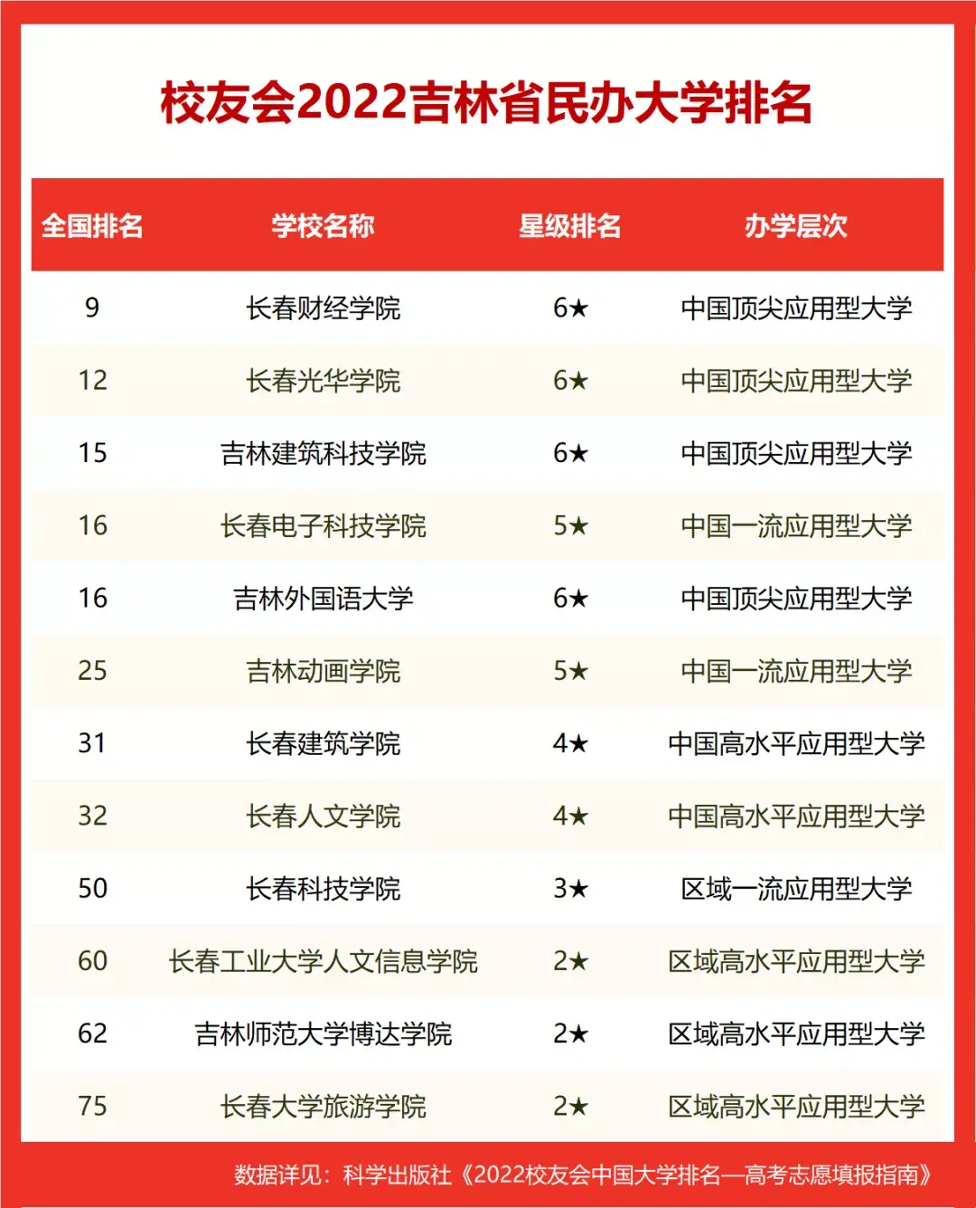 长春财经学院雄居2022吉林省民办大学排名冠军,长春光华学院位列亚军