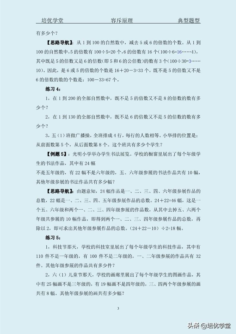 10)。因此,是 6或 5 的倍数的个数是 16+20-3=33个,既不是 5的倍数又不是