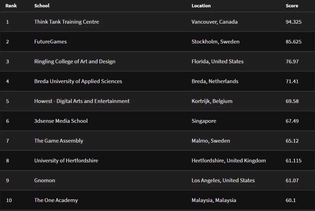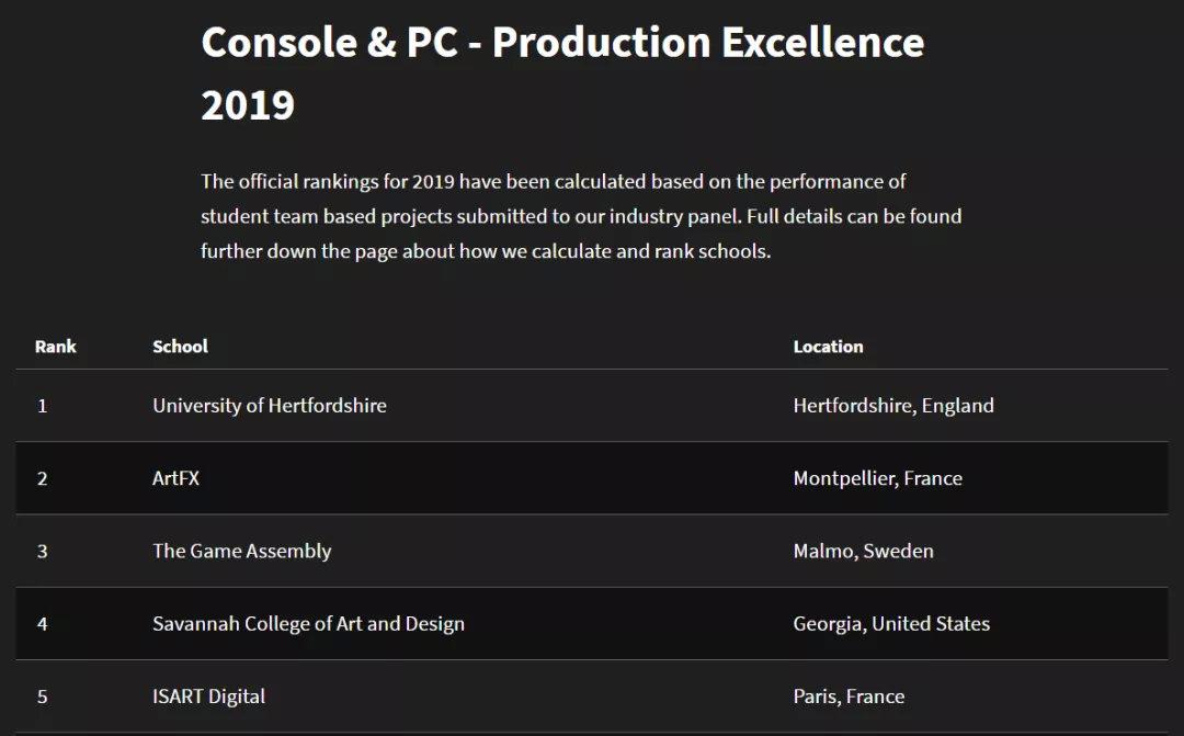 “Console and PC – Production Excellence”主机与PC游戏制作最佳院校世界第一!