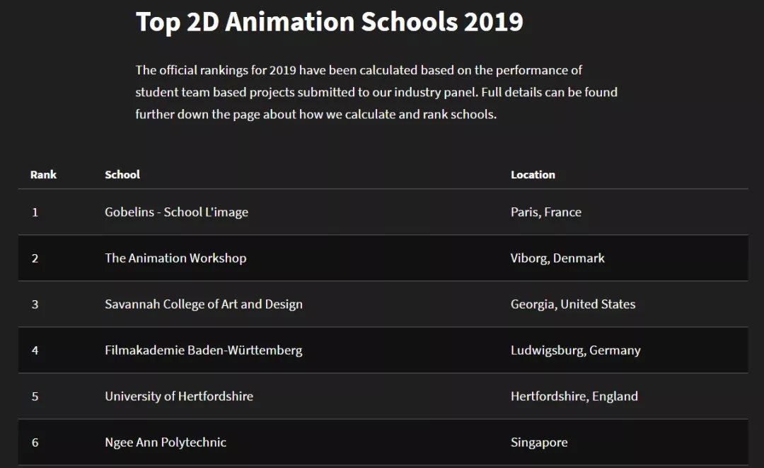 “2D Animation - Production Excellence”2D动画制作最佳院校世界第5(英国第1)!
