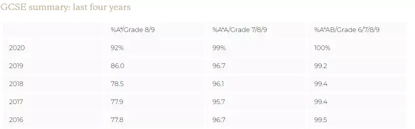 在GCSE考试中,70%的学生取得9分的成绩,92%的学生取得9-8分的成绩。